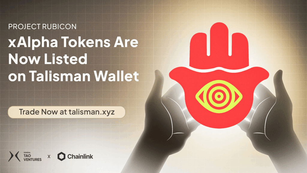 General TAO Ventures announced that Talisman, a leading wallet for decentralized AI and Web3 ecosystems, now natively supports xAlpha tokens. Powered by Chainlink CCIP, the integration enables users to access and manage xAlpha directly within the wallet, further streamlining cross-chain liquidity and enhancing the usability of Project Rubicon.