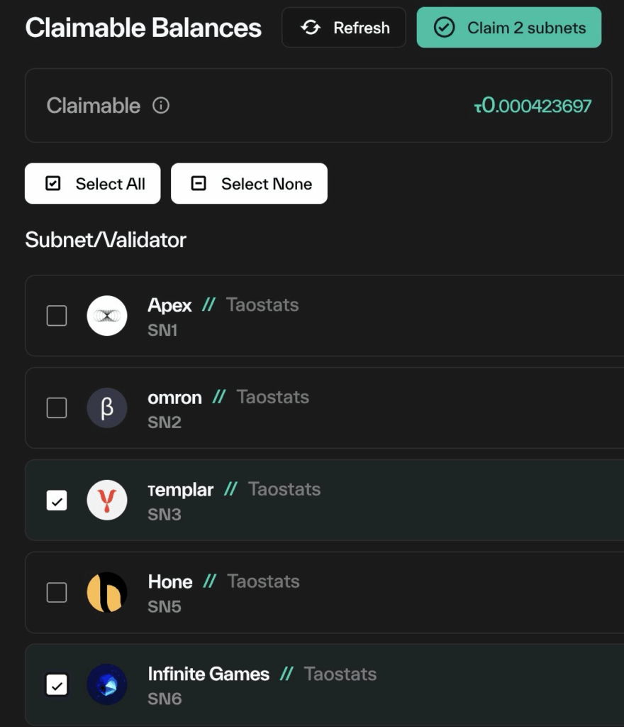 TaoStats has introduced a new feature allowing users to manually select which subnets to claim from when withdrawing their root rewards. While all rewards will still auto-claim over time, this update gives stakers finer control and flexibility through the TaoStats dashboard.