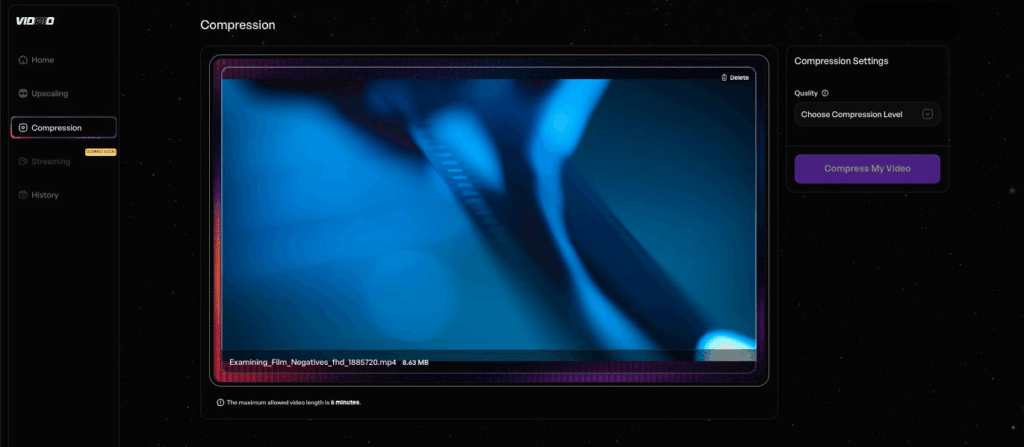 Vidaio says video compression is now live on vidaio.io, available in beta and free to use for the moment. The Bittensor-powered project focuses on AI video processing – promising smaller files at lower bitrates while preserving quality – and has previously highlighted both compression and upscaling as core features.