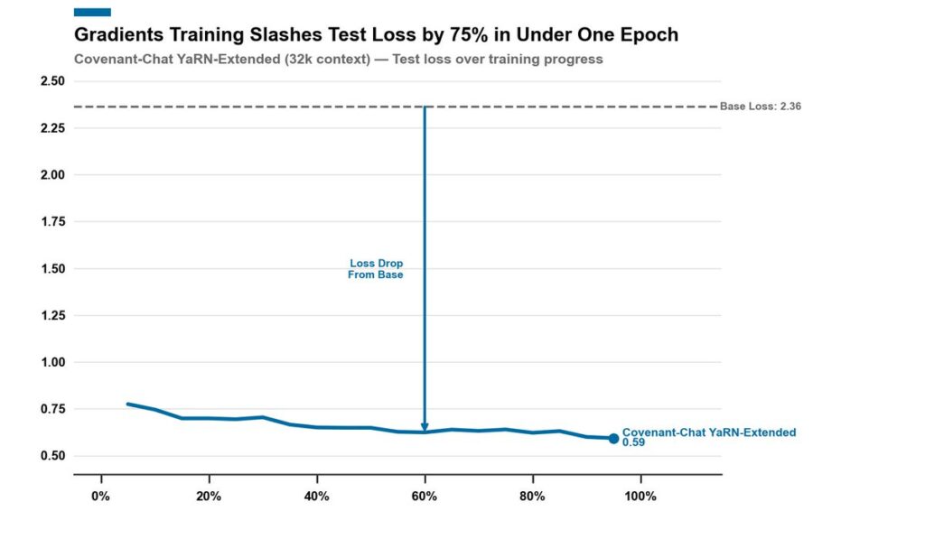 Gradients has unveiled a major advancement in decentralized AI by transforming the open-source base LLM from Templar Covenant into a fully capable chatbot assistant. The model now supports multi-turn conversation and robust user interaction. This work shows how targeted post-training and infrastructure optimization can quickly elevate open models to competitive performance levels.