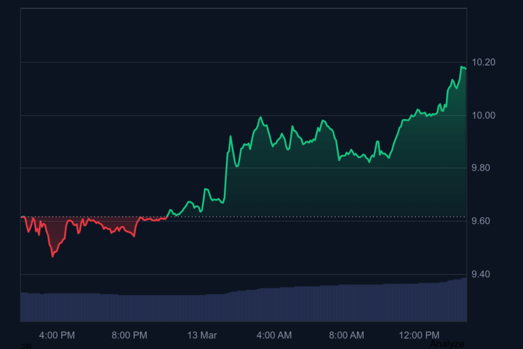 Over the past week, AVAX gained approximately 2.4%. This performance outpaced the broader cryptocurrency market, which declined about 1% over the same period. The token also outperformed comparable smart contract platform tokens, which dropped roughly 3.3% as a group. Over the past month, AVAX posted gains of around 8.8% as buyers attempted to push through resistance near the $10 level.