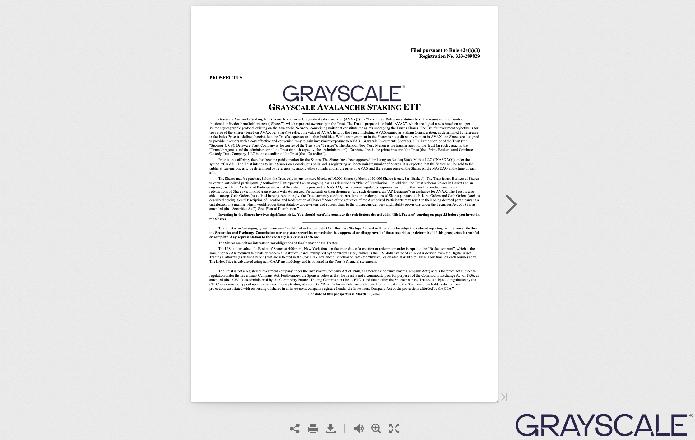 What Is the Grayscale Avalanche Staking ETF?