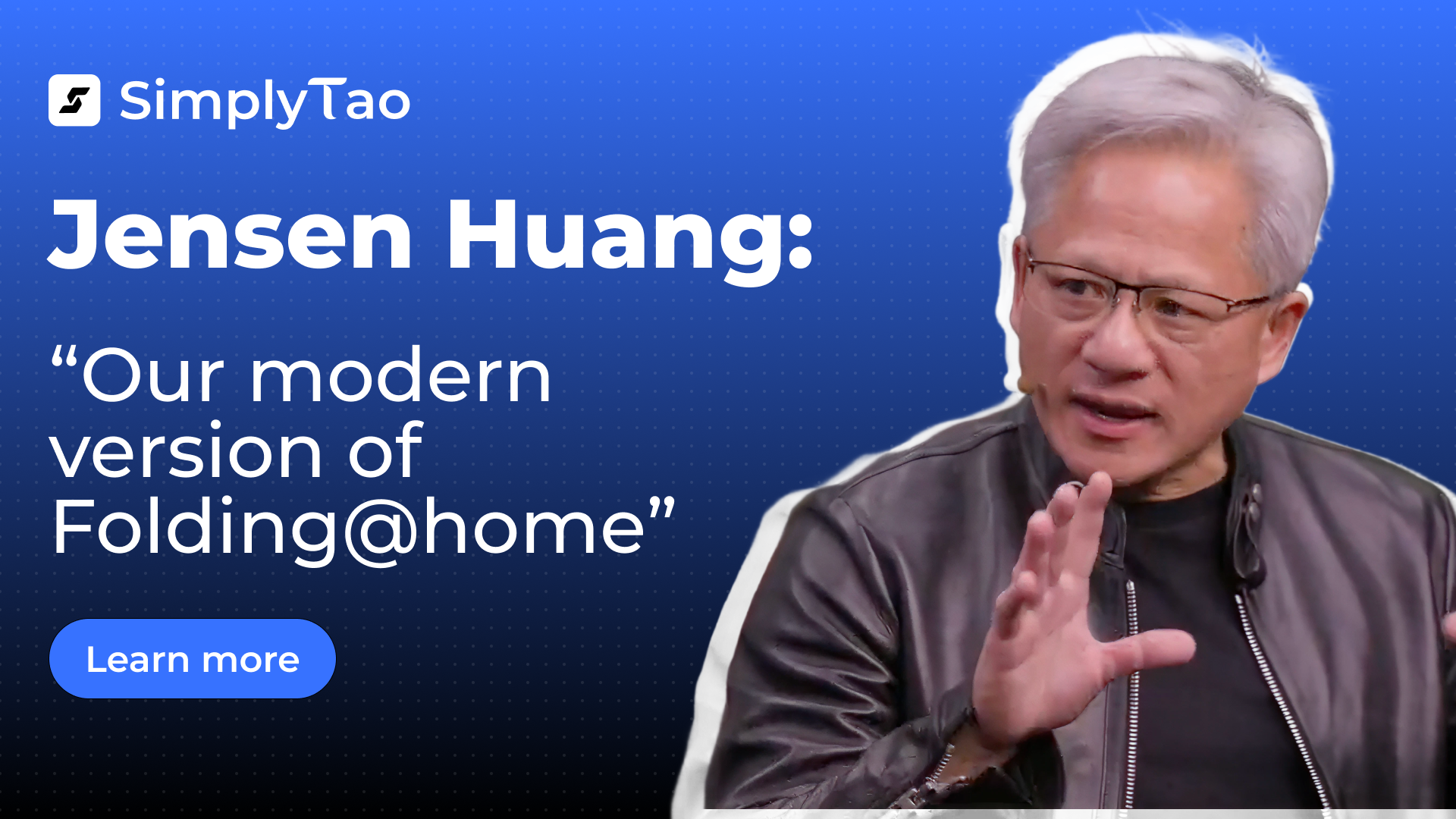 The Folding@Home comparison works. It instantly communicates the concept of decentralized compute to anyone who followed the protein folding project. No explanation of blockchain incentives or subnet architecture required. Jensen did the framing work in five words.