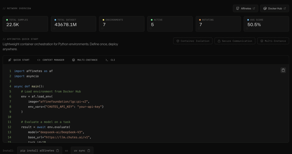 Affine addresses a fundamental bottleneck in AI development. Reinforcement learning is the technique that enables models to reason, plan, and improve through trial and error. It powers many of the most advanced capabilities in modern AI systems. However, RL training is computationally expensive and difficult to coordinate at scale. By creating a decentralized market for RL improvements, Affine turns this challenge into an open competition where the best work rises to the top regardless of who produces it.