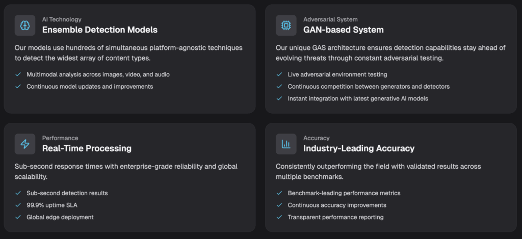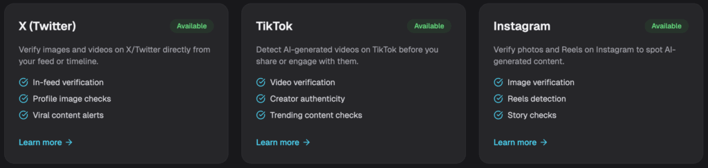 The commercial product suite then transforms raw detection capability into accessible tools. The Chrome extension lets users hover over any image on the web. It then delivers an instant verdict with a confidence score. The mobile app provides the same functionality on phones. Meanwhile, the enterprise API allows organizations to integrate detection into their own workflows. It includes custom SLAs, SOC 2 compliance, and zero data retention. For sectors like financial services, where AI-generated fraud losses are projected to reach $40 billion in the United States by 2027, this kind of detection represents critical infrastructure.