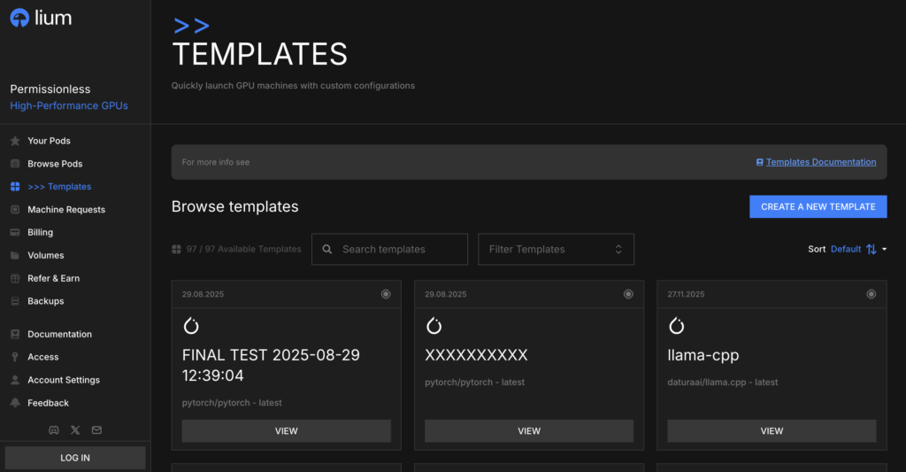 Lium provides a practical alternative to traditional GPU procurement. Renters gain flexible, market-based access to a wide range of hardware without long-term commitments. They can choose machines based on current availability, performance needs, and pricing.